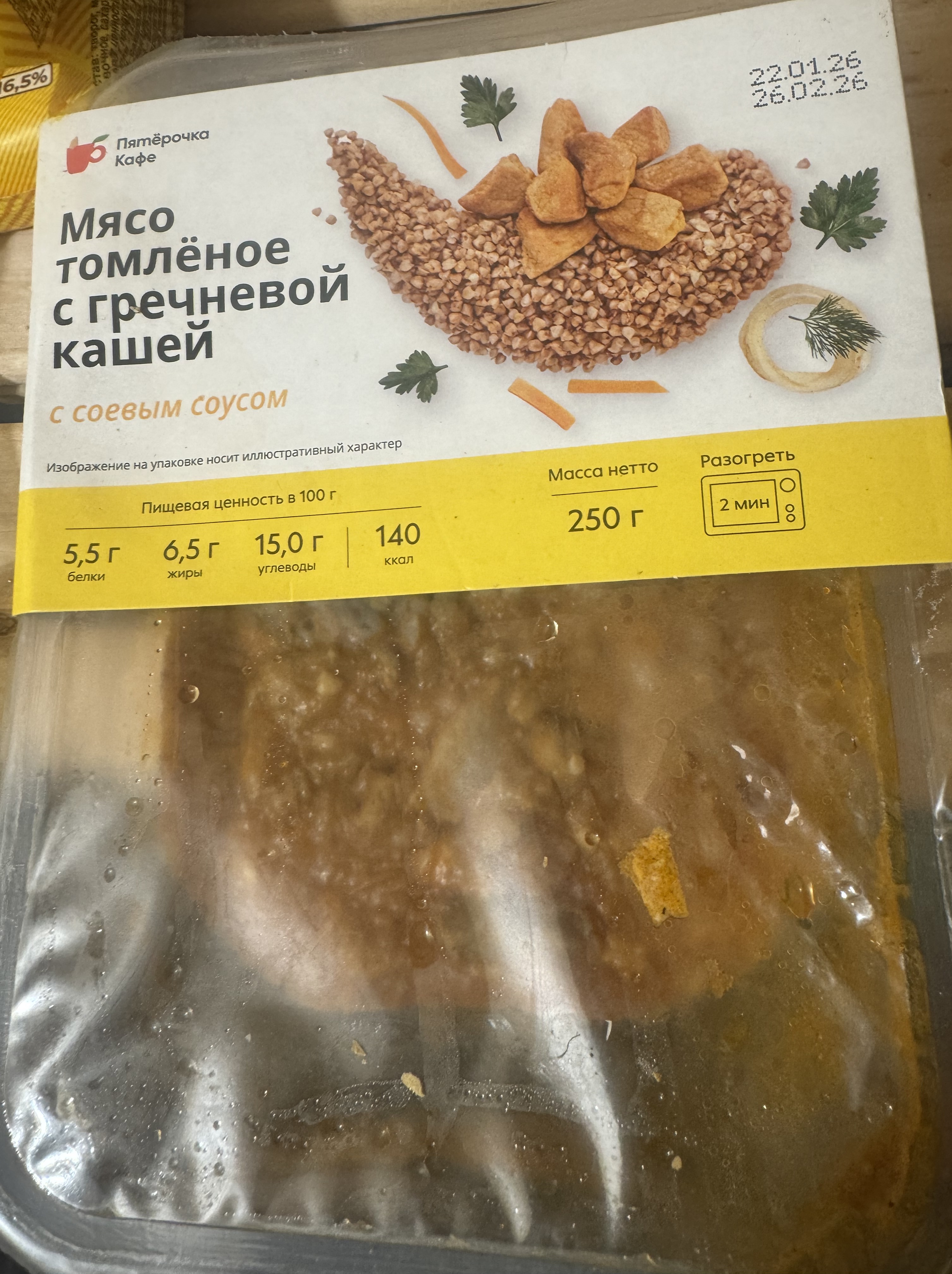 Мясо томленное с гречневой кашей
